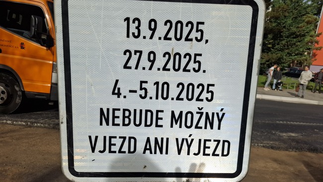 Předběžně je plánována také celková uzavírka na víkend 04. – 05.10.2025, kdy by se měla pokládat finální asfaltová vrstva.