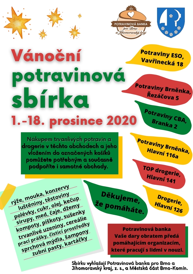 Potravinová banka pro Brno a Jihomoravský kraj, z. s. a Městská část Brno-Komín vyhlašují